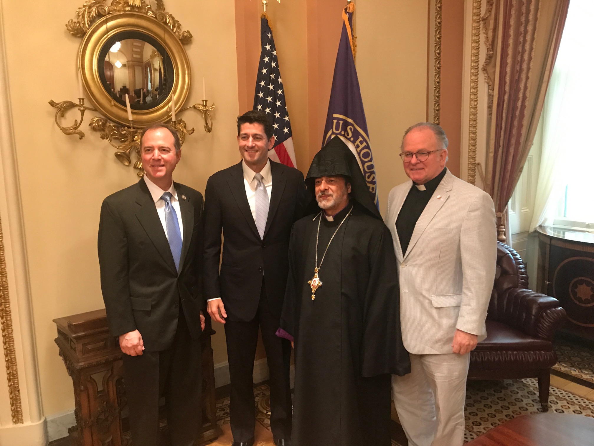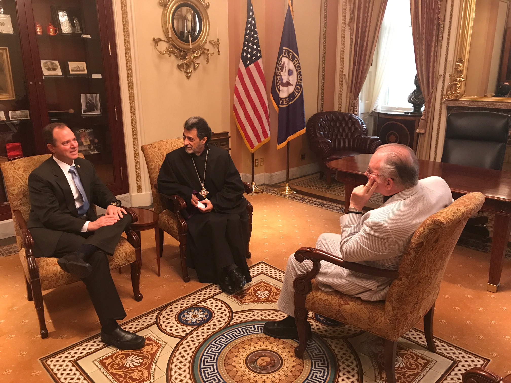 At the invitation of the Honorable Adam Schiff and the Armenian Assembly of America, on July 12, 2017, His Eminence Archbishop Hovnan Derderian, Primate of the Western Diocese of the Armenian Church of North America and Mexico, delivered the opening prayer before the United States House of Representatives.