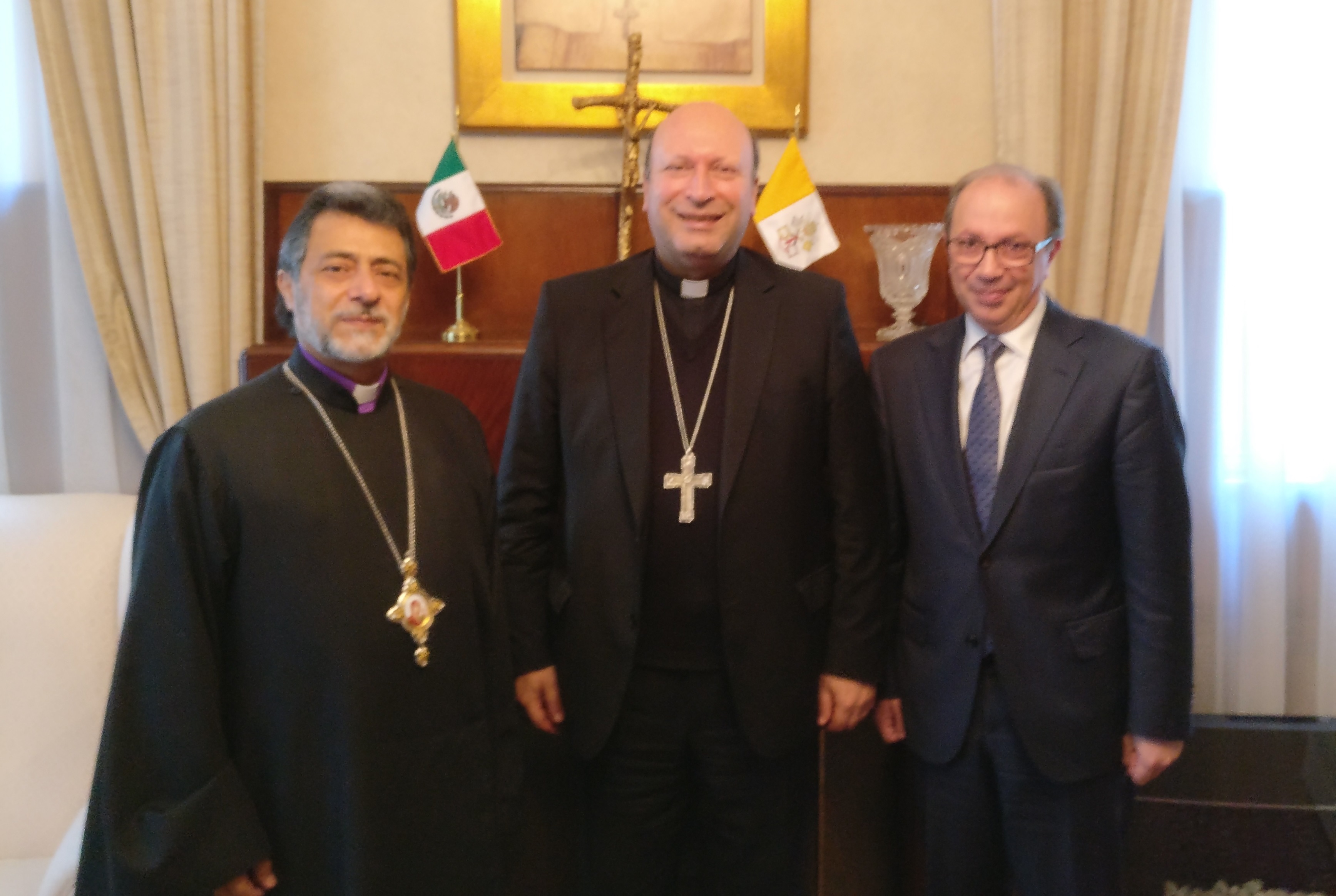 In the morning Archbishop Derderian and Ambassador Ayvazyan met with Archbishop Franco Coppola, the Apostolic Nuncio to Mexico or the head of the ecclesiastical office of the Roman Catholic Church in Mexico. The pontifical visit of the head of the Armenian Apostolic Church was discussed at length including His Holiness’ meetings with religious, government and community leaders. Â