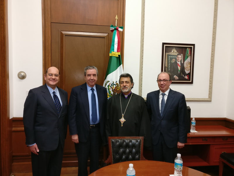 Accompanied by His Excellency Ara Ayvazyan, Ambassador of the Republic of Armenia to Mexico, on July 14, 2017, the Diocesan Primate held a series of meetings in Mexico City with religious leaders and government officials. The meetings were geared toward the planning of the first pontifical visit of His Holiness Karekin II, Supreme Patriarch and Catholicos of All Armenians, to Mexico on October 31, 2017.