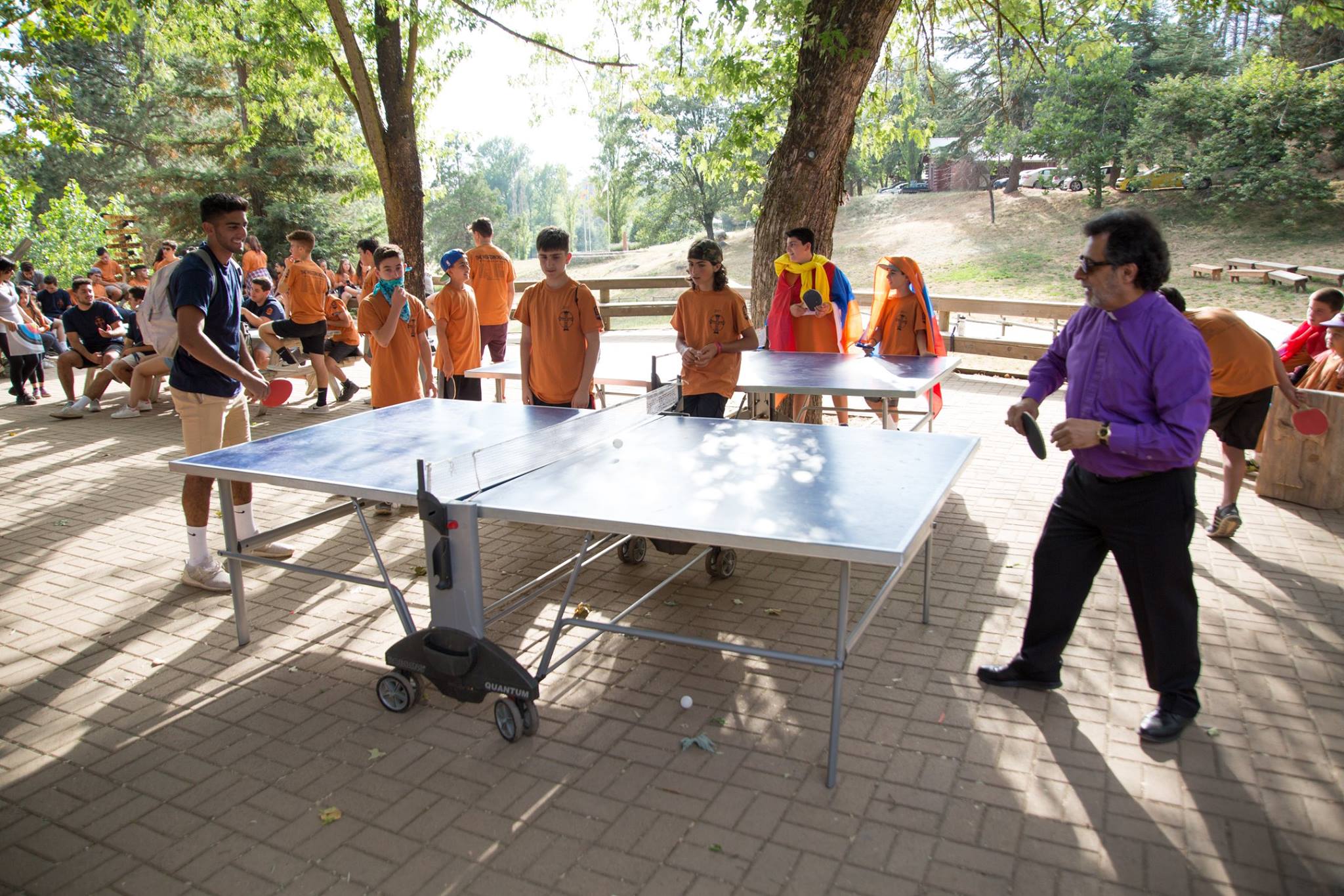 In the spirit of friendly competition, Archbishop Derderian played a game of table tennis with campers.