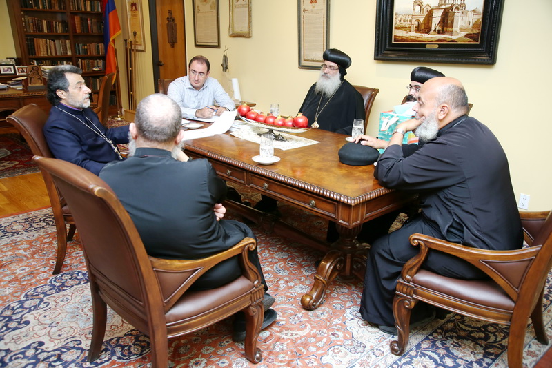 High ranking clergymen of the Coptic Orthodox Diocese of Los Angeles (a Sister Church of the Armenian Church) His Grace Bishop Abraham and His Grace Bishop Kyrillos, visited the Western Diocese on September 13, 2017 and met with the Diocesan Primate and Mr. Hayk Madoyan, the ecumenical officer of the Western Diocese. Bishop Abraham and Bishop Kyrillos were accompanied by the Rev. Fr. Antony Attallah and Rev. Fr. David Elias. Â