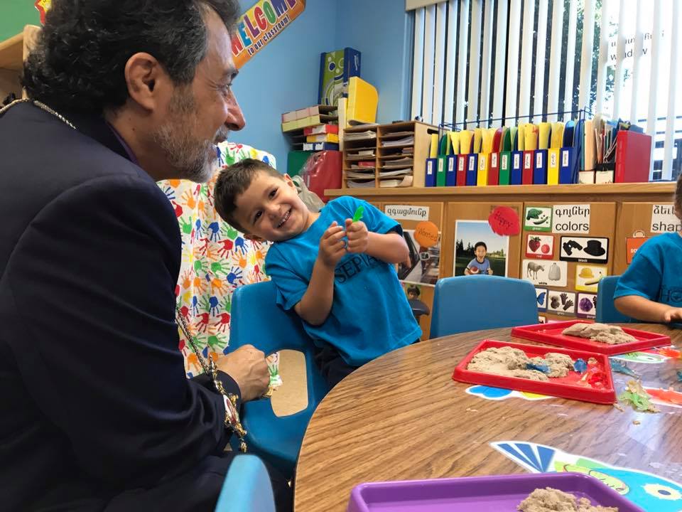 The Diocesan Primate Archbishop Derderian visited the students of Alfred and Marguerite Hovsepian School on September 6, 2017, marking His Eminence’s first visit to the school in the new academic year. Archbishop Derderian’s message to the students was that of love toward God and commitment to education.