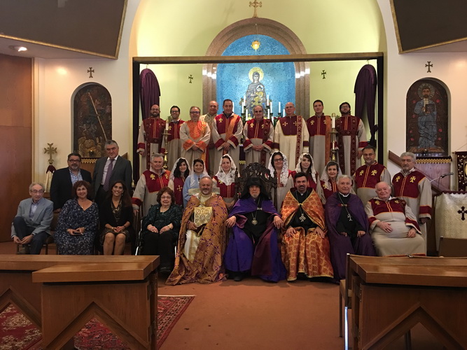 On Sunday, September 24, by the arrangement of Archbishop Hovnan Dederian the 35th Anniversary of Ordination of Fr. Vazken Movsesian was celebrated at the St. James Armenian Church in Los Angeles. It was there, in the same sanctuary that in September of 1982 Fr. Vazken took his vows and was ordained into the priesthood. At the invitation of the St. James Parish Priest, Fr. Haroutiun Tachejian, the choir and deacons served in a colorful expression of praise with Fr. Vazken celebrating the Divine Liturgy and offering the day’s sermon. During the service a congratulatory message from the Diocesan Primate, Abp. Derderian was read, wherein His Eminence reflected on the nature of the priesthood and Fr. Vazken’s journey through the ministry.