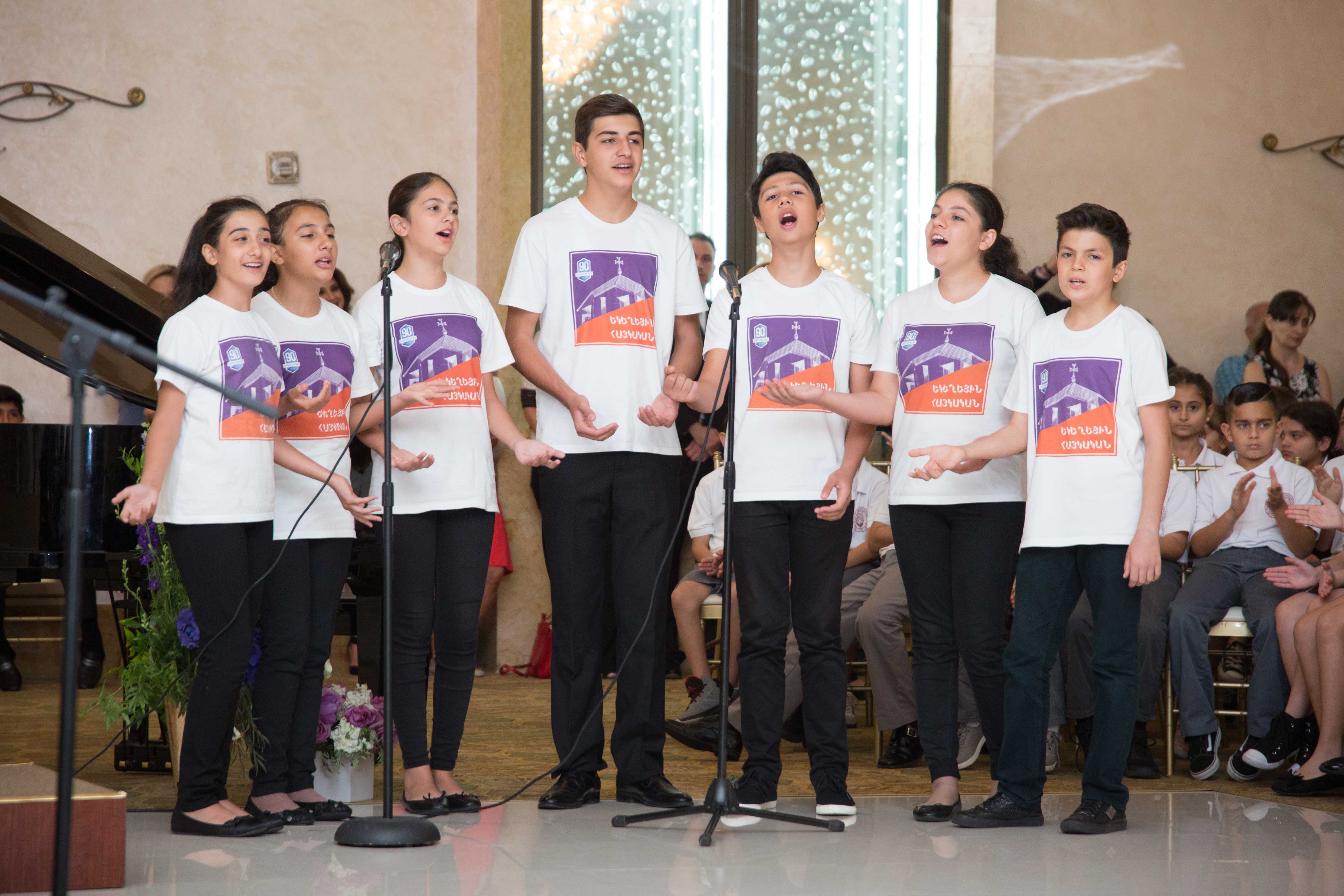 A festive cultural program, showcasing the musical and choral talents of Armenian school students was held on Saturday, October 28, 2017 at the Nazareth and Sima Kalaydjian Hall. The event, presided by His Holiness Karekin II, Supreme Patriarch and Catholicos of All Armenians, was held in celebration of the 90th anniversary of establishment of the Western Diocese.