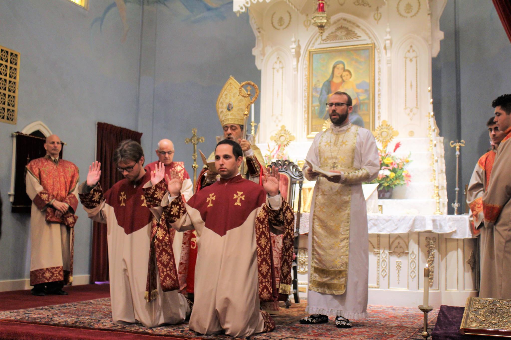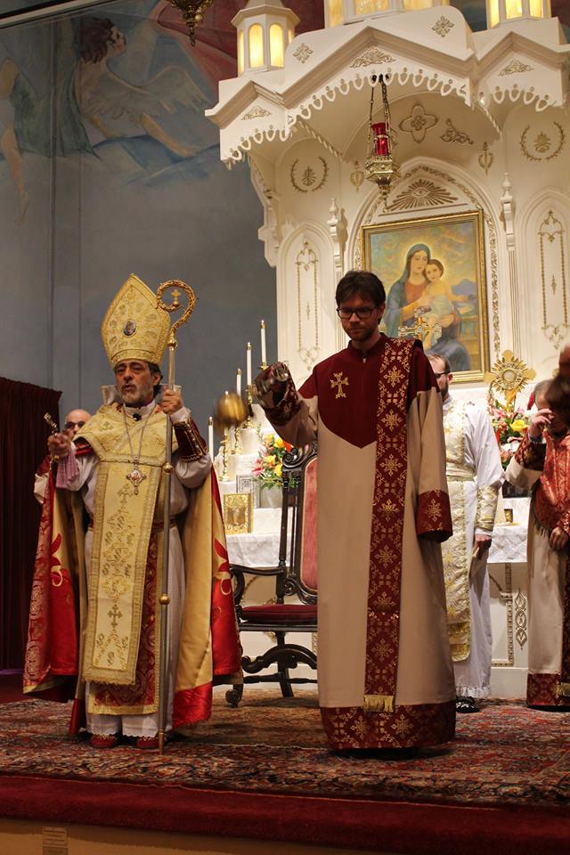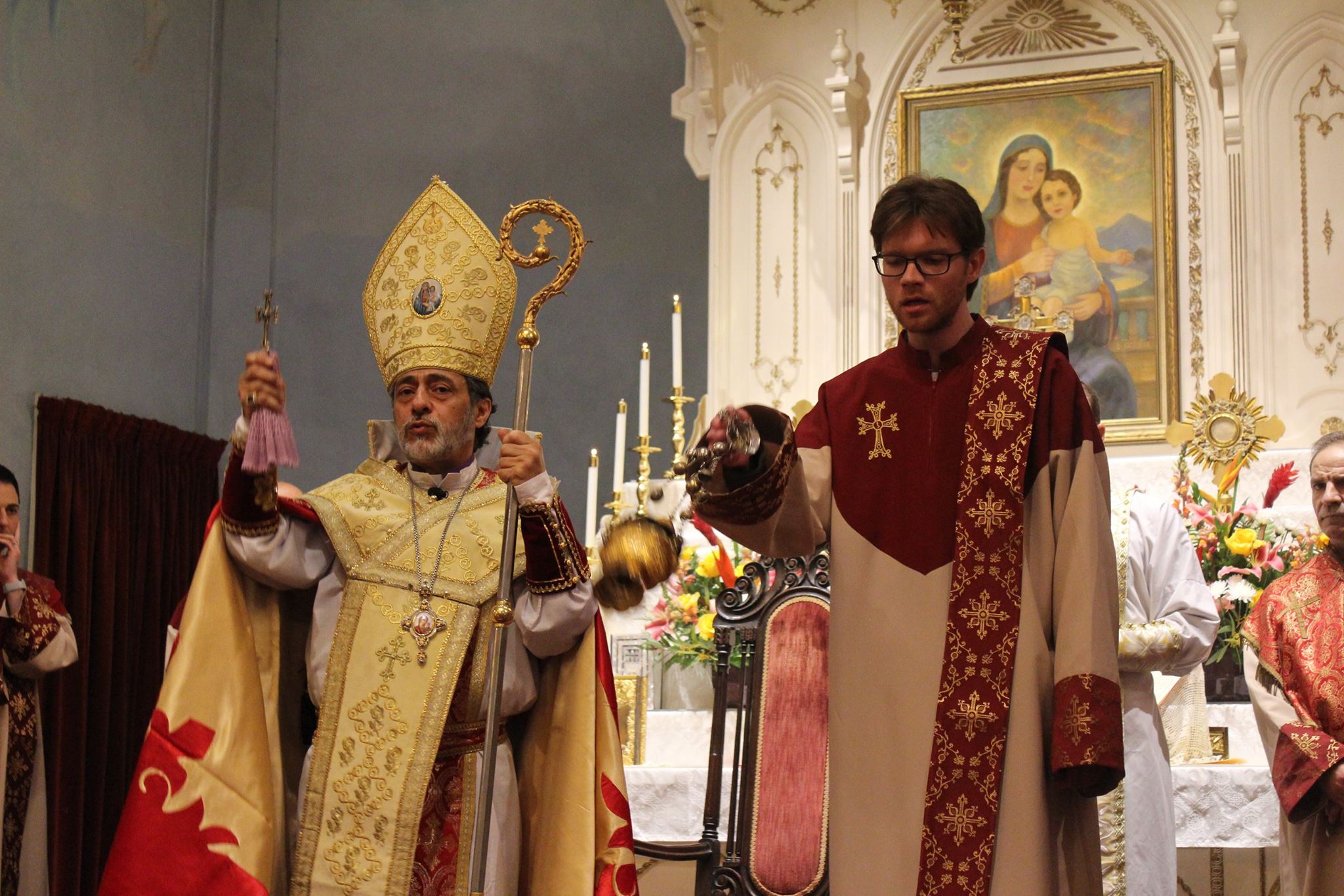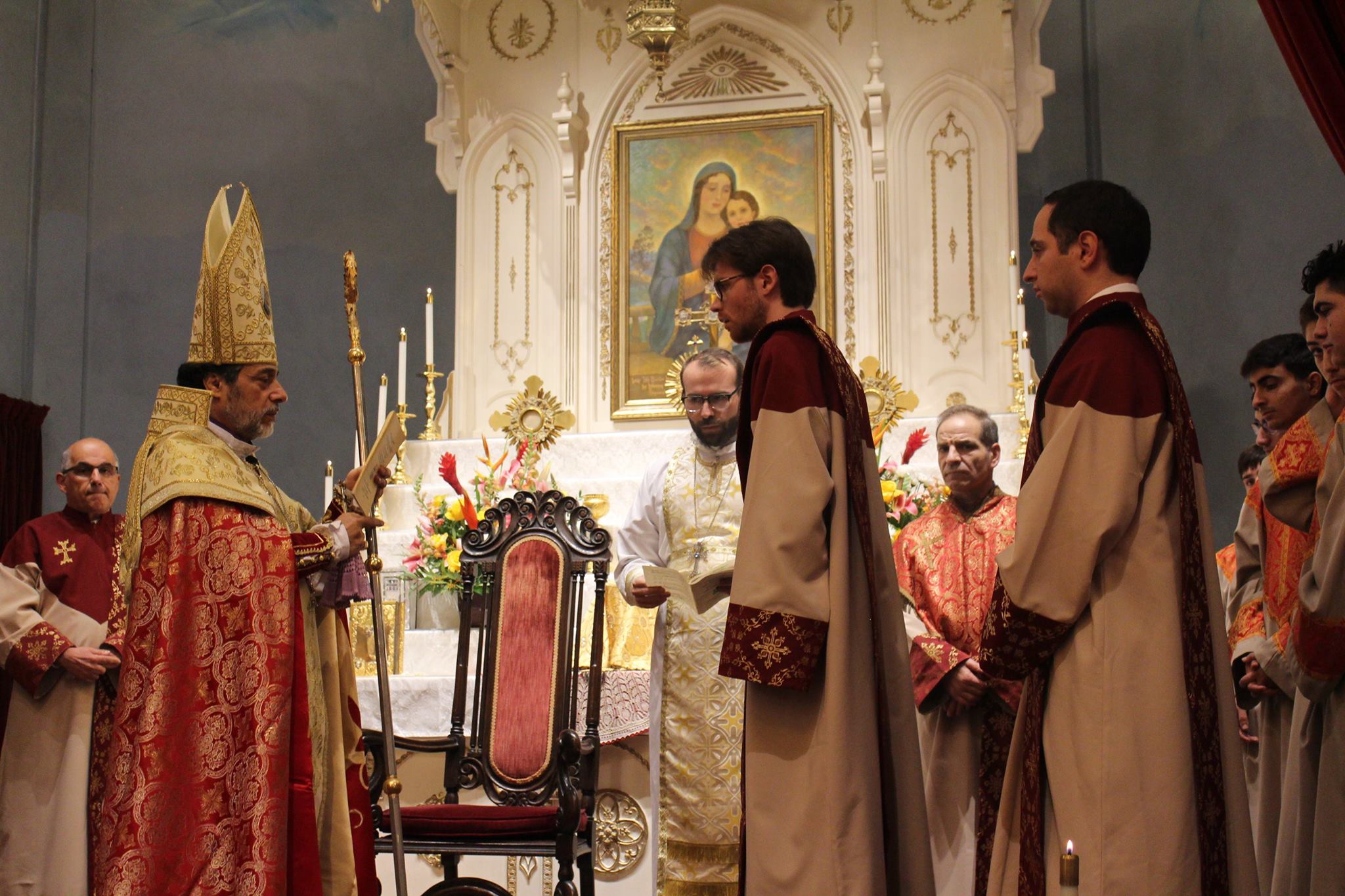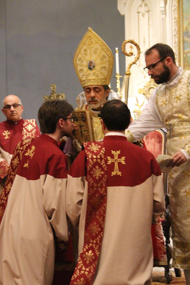 On the following day, His Eminence celebrated the Divine Liturgy and delivered the sermon at the host parish. During the service, with the assistance of the Rev. Fr. Mesrop Ash, Archbishop Derderian ordained Nshan Kesecker and Kevin Kestekyan into the Diaconate. The ordinant bishop congratulated the altar servers, wishing them a renewed sense of dedication and zeal in their service to the Armenian Apostolic Church.