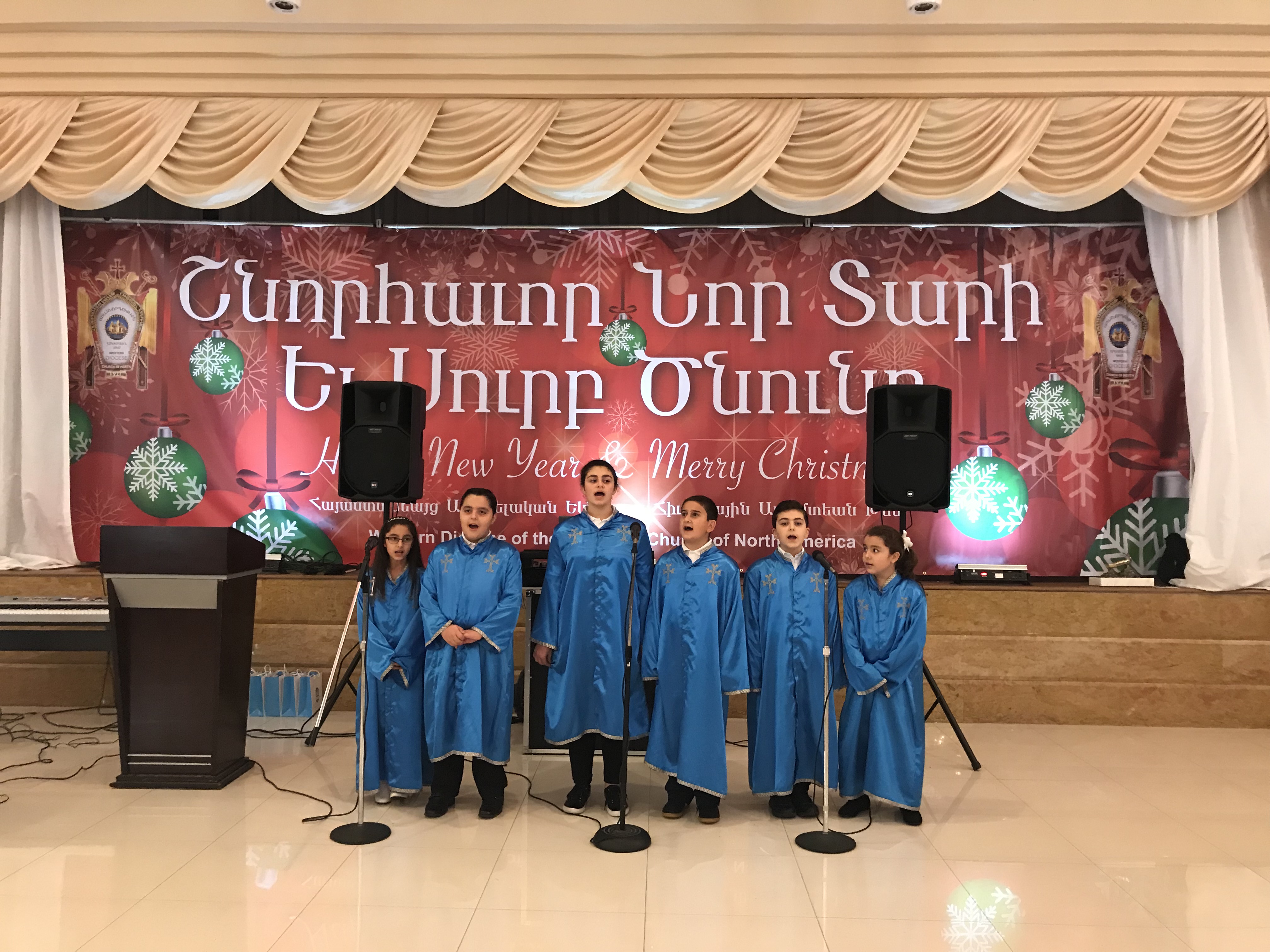 The festive celebration commenced with the welcoming remarks by the Rev. Fr. Khajag Shahbazyan, the Cathedral’s Pastor. St. Leon Armenian Cathedral ACYO member Delilah Shahbazian served as the event’s emcee. In his message, His Eminence Archbishop Hovnan Derderian congratulated the guests on the blessed occasion of the Nativity and Theophany of Christ, exhorting them to serve Christ, our Lord and the Armenian Church with renewed hearts and spirits. Led by the Primate, Diocesan clergy of the greater Los Angeles area sang sacred hymns dedicated to the Nativity.