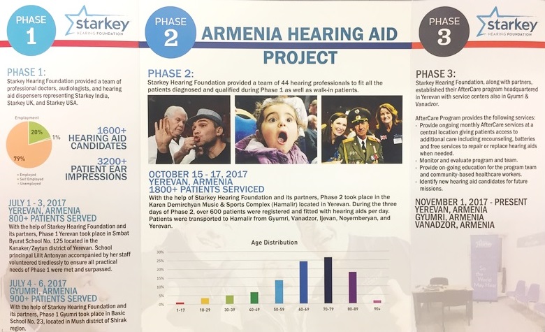 Founders of the Armenia Hearing Aid Project Mr. and Mrs. Armen and Heidi Kavoukjian expressed their genuine gratitude to the Starkey Foundation for their vital involvement in bettering the lives of Armenians with hearing loss. They highlighted the Armenia Hearing Aid’s three-phase process in servicing over 1,800 patients with hearing loss.