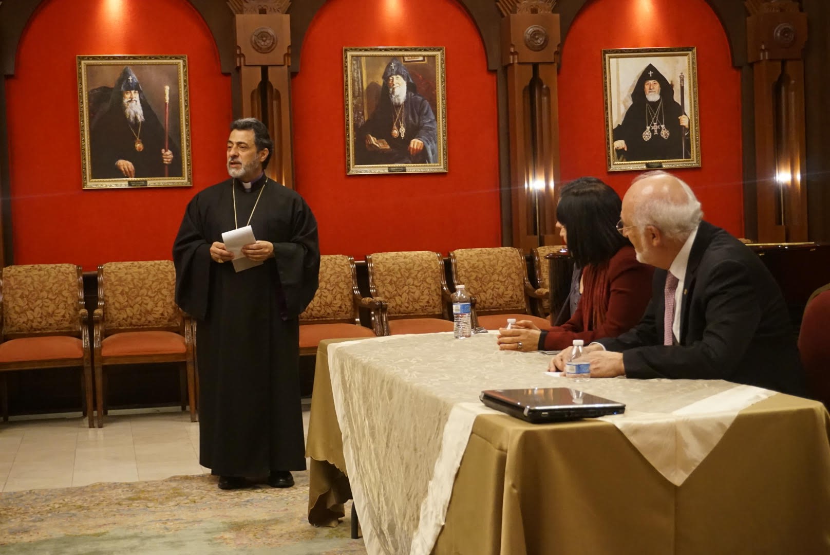 In his remarks, the Diocesan Primate thanked his esteemed guests and commended the invaluable mission of the AUA in molding the future leaders of Armenia. His Eminence committed his full-fledged support of the outstanding mission of the AUA, noting the importance of higher education in the overall advancement of society.Â