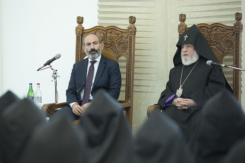 Վարչապետ Փաշինեանն անդրադարձ կատարեց նաեւ Հայոց Եկեղեցու կարեւոր առաքելութեանը եւ ազգային կեանքում անուրանալի դերակատարութեանը, խօսեց Եկեղեցի-պետութիւն յարաբերութիւնների ու գործակցութեան մասին: ՀՀ վարչապետը ներկայացրեց Վրաստան կատարած իր պաշտօնական այցի արդիւնքները, պատասխանեց նաեւ եկեղեցականների հարցերին, որոնք վերաբերում էին ներհայաստանեան կեանքի զարգացումներին, ղարաբաղեան հակամարտութեան կարգաւորմանը, հայրենի պետութեան արտաքին քաղաքականութեանը եւ Սփիւռքին: