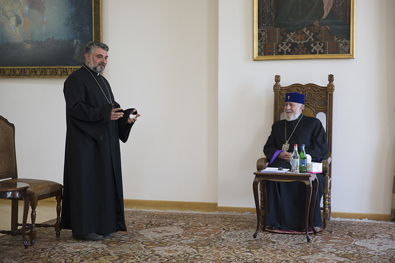 Տեր Հայրը Վեհափառ Հայրապետին ներկայացրեց ուխտավորներին, անդրադարձավ ծխական կյանքին, ինչպես նաև կիսվեց Հայաստան կատարած այցի տպավորություններով: