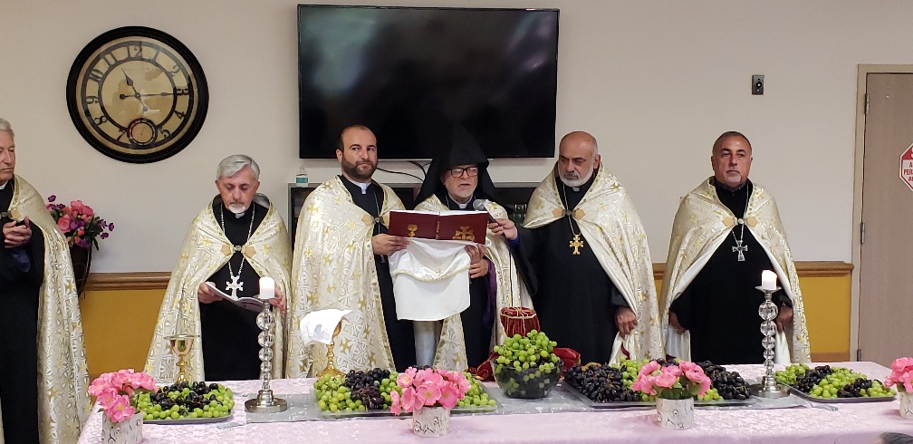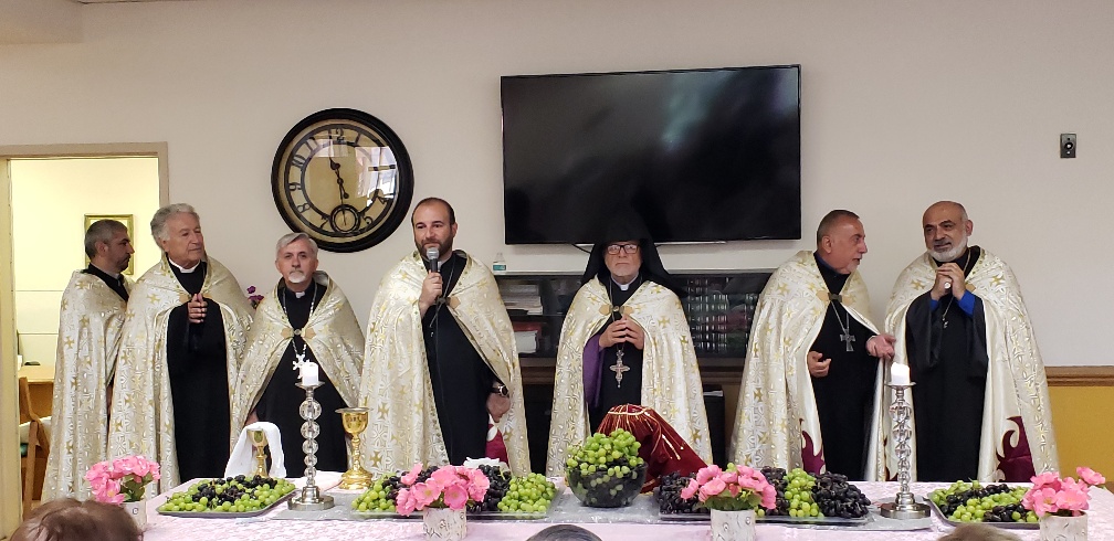 Հոգշ. Տ․ Տաճատ Ծ․ Վրդ․ Յարտըմյանի գլխավորությամբ ներկա հոգևորականները՝ Տ․ Արշակ, Տ․ Մանուկ, Տ, Հովսեփ․ Տ․ Շնորհք և Տ․ Եղիա, քահանաները Անդաստանի արարողություն կատարեցին, օրհնելով խաղողը Արարատ Տան ընդհանուր սրահում, ապա բաշխվեց Սուրբ Հաղորդություն։ Այնուհետև հոգևորականները մեր մայրերի ու հայրերի հետ ճաշեցին։