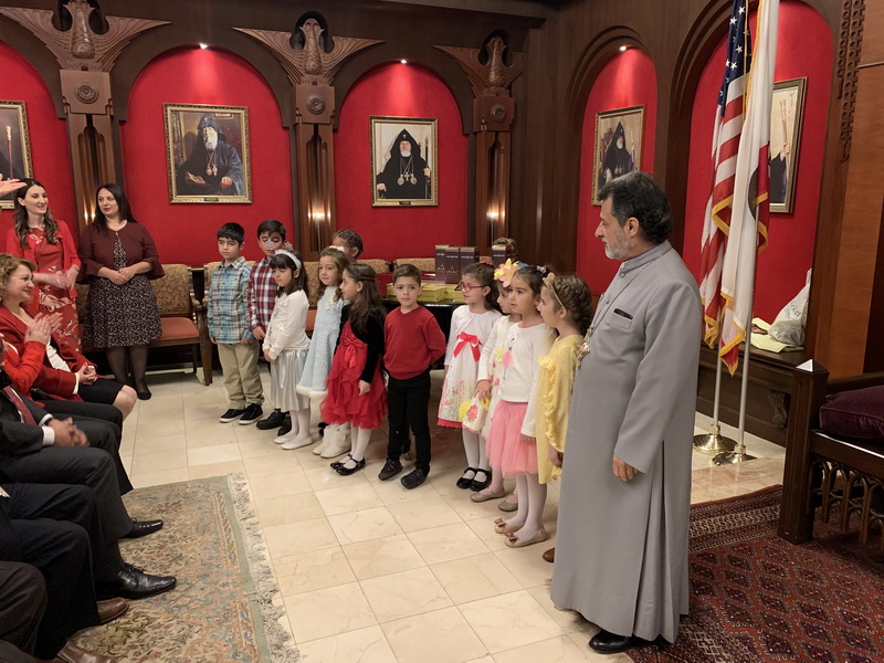 Ներկայ փոքրիկները իրենց դիւթիչ ձայնով քանի մը երգերով հանդէս եկան եւ տարբեր երանգ պարգեւեցին այս հանդիպման, որմէ ետք բոլորուեցան Սրբազան Հօր շուրջ եւ միահամուռ աղօթեցին աշխարհիս խաղաղութեան, Եկեղեցւոյ անսասանութեան ու Մայր Հայրենիքի բարգաւաճման համար։ Հանդիպման աւարտին Յովնան Սրբազանը իր իսկ հեղինակած աղօթագրքերը նուիրեց իւրաքանչիւրին եւ մաղթեց, որ բացուող Նոր Տարին ըլլայ օրհնաբեր, նորանոր նուաճումներով եւ իրագործումներով լի տարի մը։
