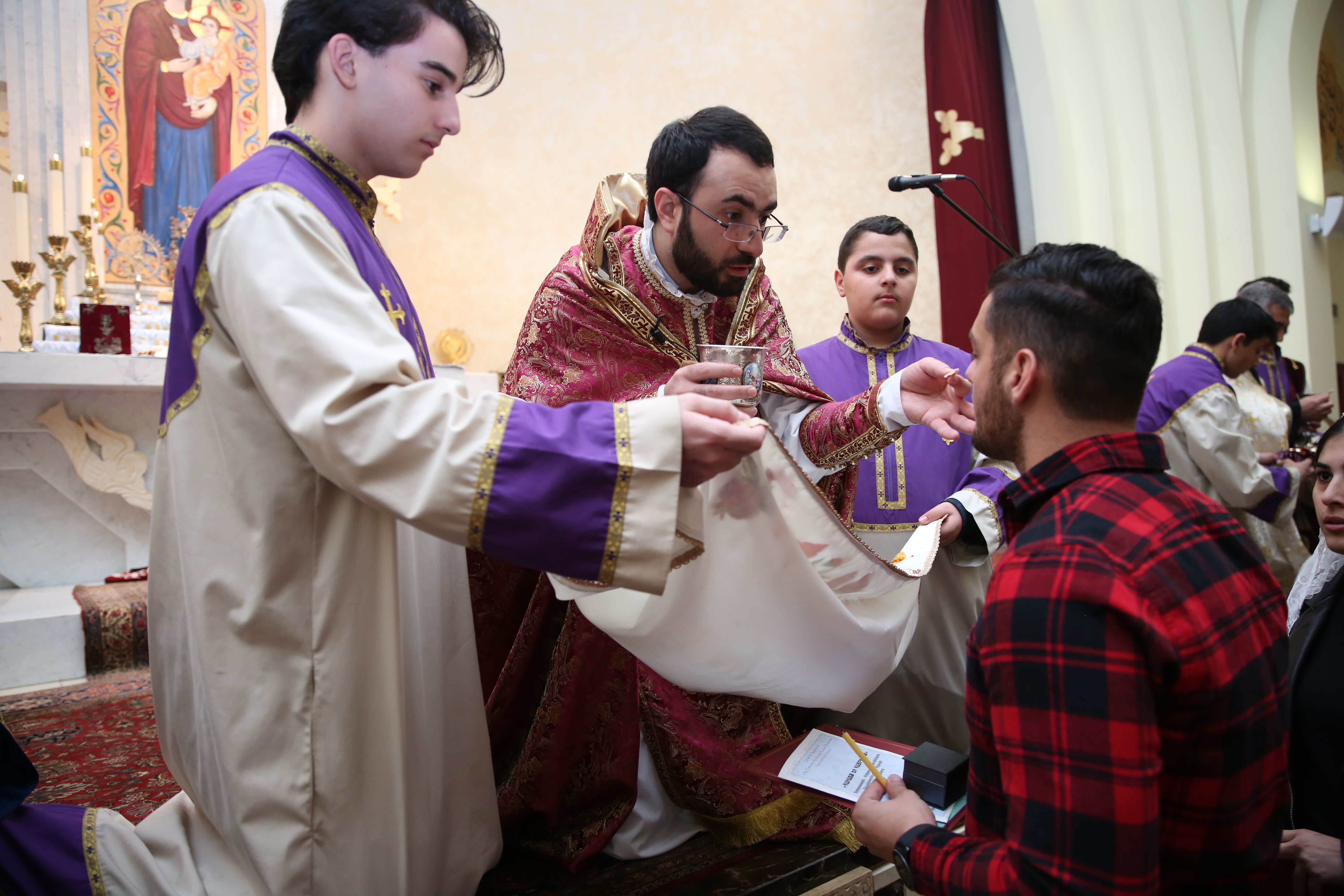 Այս առիթով, հաւաքուած էին 45 Երիտասարդ¬Երիտասարդուհիներ, որոնք Սբ. Հաղորդութիւն ճաշակելէ առաջ հաւաքուեցան եկեղեցւոյ բեմին առջեւ: Մինչ այդ, Առաջնորդ Սրբազան Հայրը, երեք Վարդապետներով եւ երեք Քահանաներով, շարականի երգեցողութեամբ բեմ բարձրացած՝ սկսան յատուկ արարողութիւն մը: Աւետարանի ընթերցում, շնորհակալութեան աղօթք եւ Խոստումի բանաձեւ իրարու յաջորդեցին միասնական արտասանութեամբ (Հայերէն եւ Անգլերէն լեզուներով): Առաջնորդ Սրբազանը տուաւ իր օրուան խորհուրդին առընչուած ուժեղ պատգամ մը, որ քաջալերանքի խօսքերով կը թելադրէր եւ   Երիտասարդ¬Երիտասարդուհիները կը յորդորէր՝ Ղեւոնդեանց եւ Վարդանանց Նահատակներուն հոգիով ու գործնական տեսիլքով հաւատարիմ ըլլալ Քրիստոնէական Հաւատքին ու Կեանքին, Հայ Առաքելական Եկեղեցիին եւ Հայրենիքին: