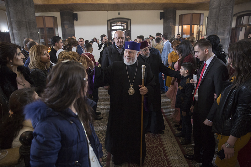 Այնուհետև Շիրակի թեմի առաջնորդարանում Ամենայն Հայոց Կաթողիկոսը հանդիպում ունեցավ Շիրակի մարզպետ Տիգրան Պետրոսյանի և Գյումրիի քաղաքապետ Սամվել Բալասանյանի հետ: Նորին Սրբությունը հետաքրքրվեց Գյումրիում և Շիրակի մարզում իրականացվող զարգացման տարբեր ծրագրերով, առկա հիմնախնդիրներով և մարզի բնակչության դիմագրաված մարտահրավերներով: Հանդիպման ընթացքում խոսվեց նաև ի խնդիր ժողովրդի բարօր կյանքի` քաղաքային ու մարզային իշխանությունների և թեմի միջև առկա համագործակցության, ինչպես նաև փոխգործակցության հետագա ծրագրերի մասին:
