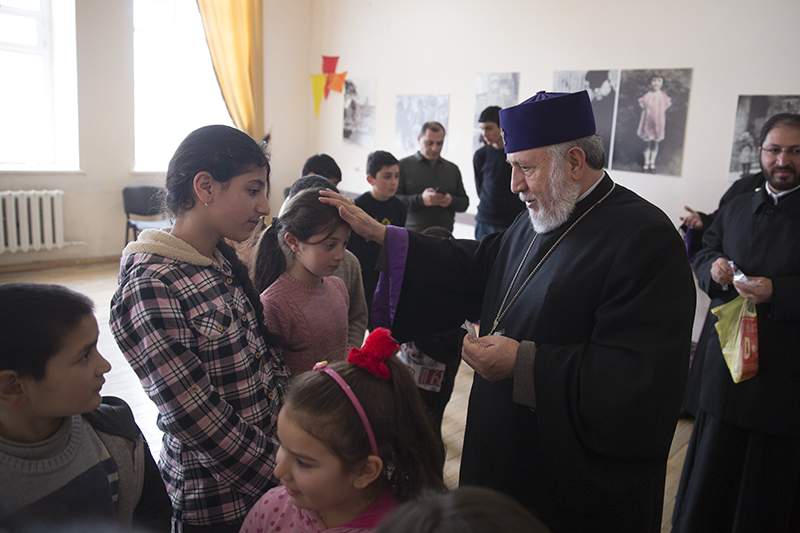 Նորին Սրբությունը եղավ նաև Մայր Աթոռի և ՀԲԸՄ հովանու ներքո գործող Գյումրու Հայորդյաց տանը, որտեղ տնօրեն Աստղիկ Եդիգարյանի ուղեկցությամբ հանդիպեց տարբեր խմբակներում ուսանող պատանիների և մանուկների հետ` նրանց բաշխելով իր հայրական օրհնությունն ու գնահատանքը: