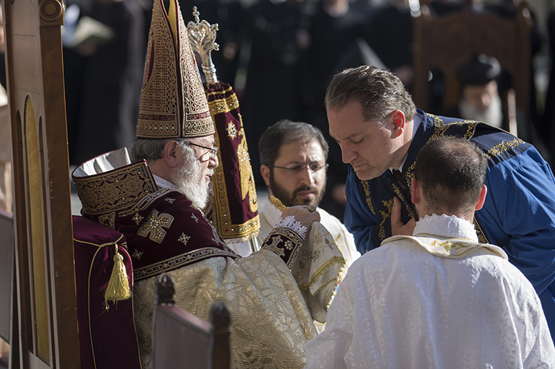 Առընթերականերն էին Արևմտյան Եվրոպայի Հայրապետական պատվիրակ Գերաշնորհ Տ. Խաժակ արքեպիսկոպոս Պարսամյանը և Մայր Աթոռ Սուրբ Էջմիածնի Վանորեից տեսուչ Գերաշնորհ Տ. Արտակ եպիսկոպոս Տիգրանյանը, խարտավիլակն էր Դամասկոսի հայոց թեմի առաջնորդ Գերաշնորհ Տ. Արմաշ եպիսկոպոս Նալբանդյանը: Մայր Տաճարի երգչախումբը ղեկավարեց խմբավար Խորեն Մեխանեջյանը: