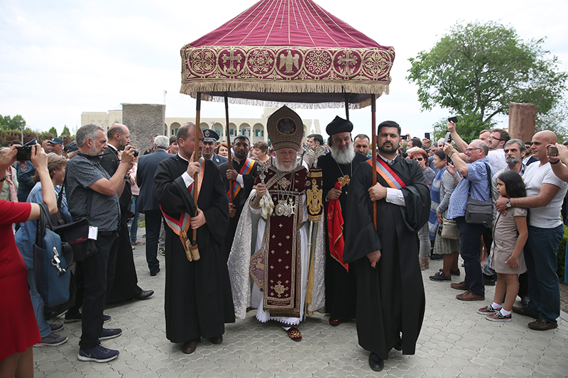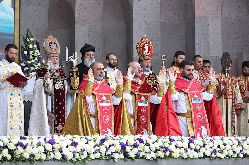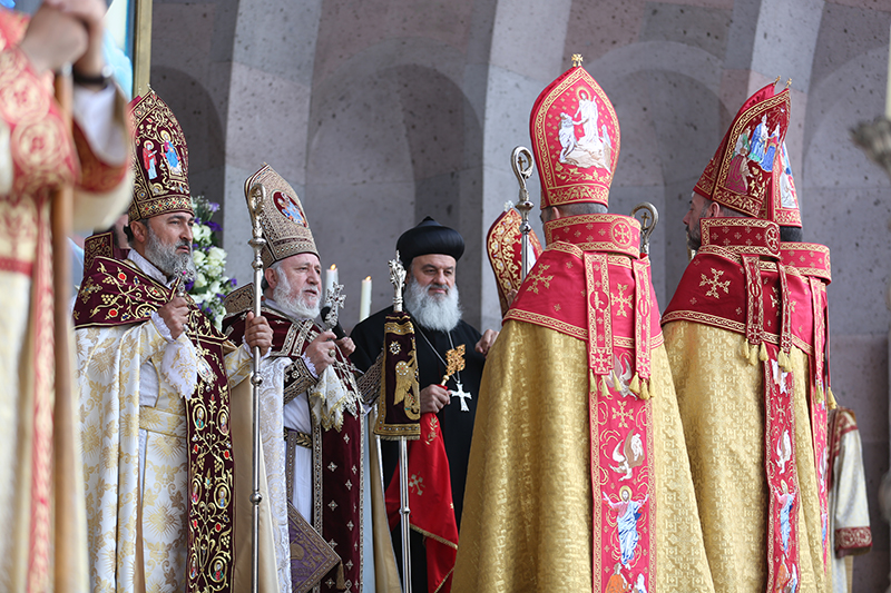 Մայիսի 12-ին Սուրբ Պատարագը սկսվեց Հայրապետական հանդիսավոր թափորով, որով ամպհովանիի ներքո Ամենայն Հայոց Կաթողիկոսը և Անտիոքի ու Համայն Արևելքի Ասորի Ուղղափառ Եկեղեցու Ընդհանրական Պատրիարքն առաջնորդվեցին դեպի Սուրբ Տրդատի բաց խորան, որտեղ սկսվեց Սրբազան Խորհուրդը: