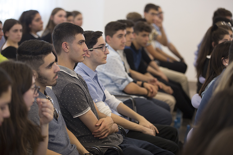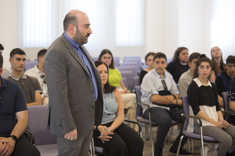 Հանդիպմանը դպրոցի հայոց լեզվի և պատմության ուսուցիչ Բարեշնորհ Հովհաննես սարկավագ Գյումրույանը, նշեց, որ աշակերտների մեծամասնությունը առաջին անգամ են Հայաստանում և դպրոցում գեղեցիկ ավանդույթ է ձևավորվել, ըստ որի 10-րդ դասարանի աշակերտները ուխտավորաբար այցելում են Հայաստան և անպայմանորեն Սուրբ Էջմիածին՝ ծանոթանալու պատմական, ազգային, հոգևոր և մշակութային արժեքներին: