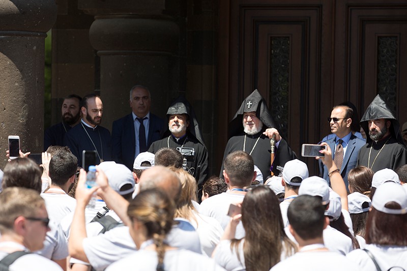 Ուխտագնացության մեկնարկը տրվեց Մայր Աթոռ Սուրբ Էջմիածին այցելությամբ, որտեղ երիտասարդները Վեհարանի առջև ստացան Ամենայն Հայոց Կաթողիկոսի օրհնությունն ու պատգամը: