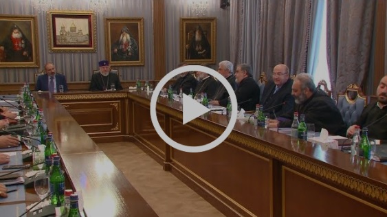 Ողջունելով ՀՀ վարչապետի այցը Մայր Աթոռ Սուրբ Էջմիածին` Ամենայն Հայոց Կաթողիկոսն անդրադարձ կատարեց Գերագոյն հոգեւոր խորհրդի քառօրեայ ժողովի օրակարգում ընդգրկուած հարցերին եւ ներկայացրեց Գերագոյն հոգեւոր խորհրդի անդամներին: Վեհափառ Հայրապետը կարեւորեց նմանօրինակ հանդիպումները` խօսելու ինչպէս եկեղեցական խնդիրների, այնպէս եւ հայրենիքի առջեւ ծառացած մարտահրաւէրների եւ մեր ժողովրդին յուզող հարցերի վերաբերեալ: