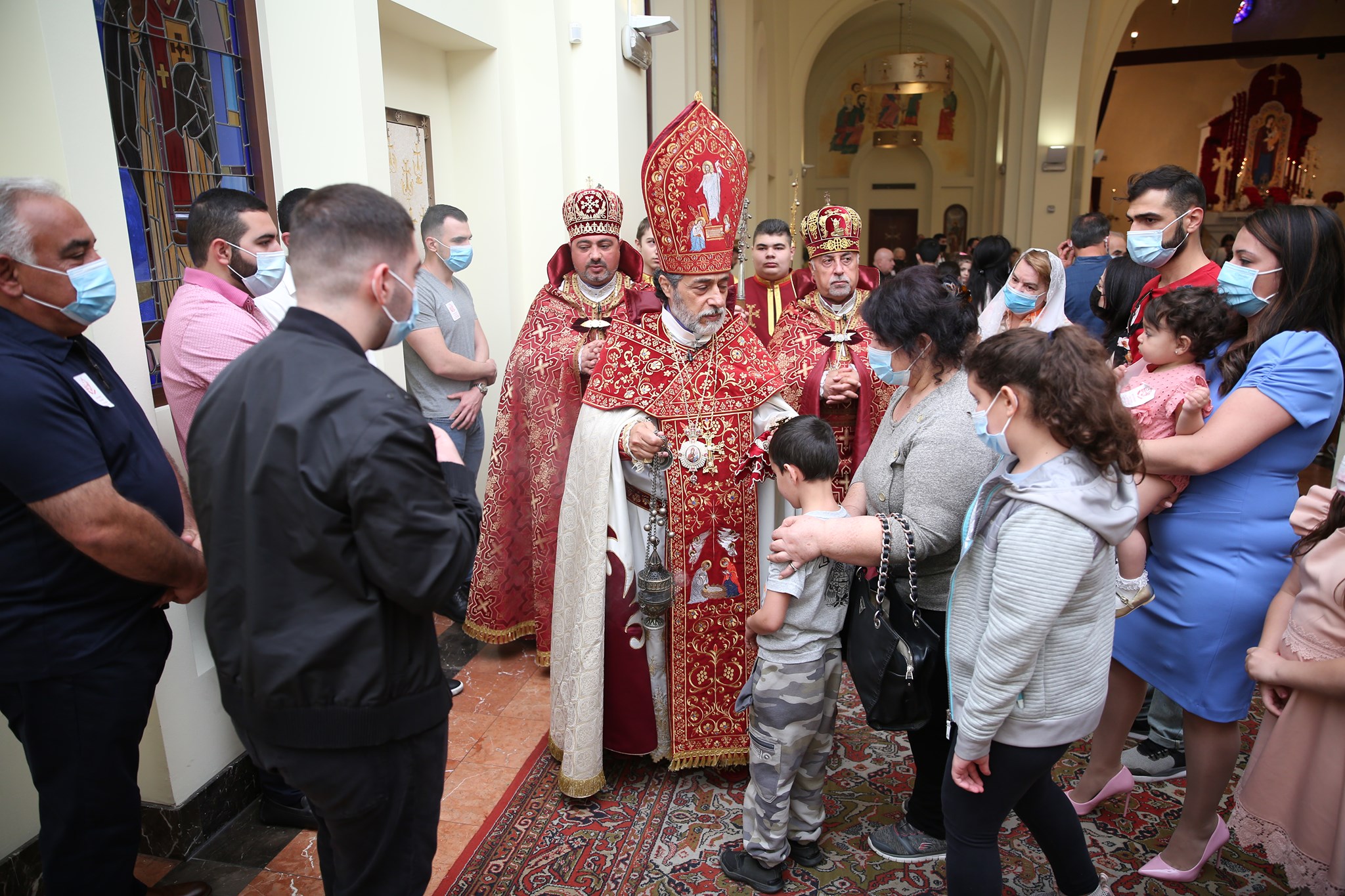Կիրակի, Ապրիլ 4, Պըրպէնքի Սրբոց Ղեւոնդեանց Առաջնորդանիստ Մայր Տաճարին մէջ Սուրբ Յարութեան Հրաշափառ Պատարագը մատուցանեց եւ օրուան պատգամը փոխանցեց` Թեմիս բարեխնամ Առաջնորդ Գերաշնորհ Տ. Յովնան Ս. Արք. Տէրտէրեան: Առաջնորդ Սրբազան Հայրն Իր քարոզին մէջ մասնաւորաբար նշեց. «Սիրելի բարեպաշտ հայորդիք, Յարութեան որդիքն էք դուք այսօր, քանզի ձեզանից յուրաքանչիւրի հոգու մէջ Յարութեան յոյսն է, շունչն է, կեանքն է, որ կ’արտացոլուի: Այսօր դուք եկած էք այստեղ` հաղորդ դառնալու Քրիստոսի Սուրբ Պատարագի խորհուրդին եւ այս Պատարագով Ձեզ հետ տանելու հոգեւոր այն գլխաւոր, ճշմարիտ, յաւերժական Գանձը, որ Քրիստոս Աստուածորդու Յարուցեալ ներկայութիւնն է: Անբացատրելի, բայց եւ ներշնչող ուժականութեամբ, բոլորս ալ ուրախութիւն կ’ապրինք այս առաւօտ, մանուկի մը պէս ուրախ ենք հոգեպէս, ինչը բառերով կարելի չէ բացատրել, ոչ ալ պէտք է, որ փորձենք բացատրել այդ ուրախութեան խորհուրդը, քանզի մարդկային տրամաբանութեան մէջ կարելի չէ սահմանափակել եւ բացատրել Սուրբ Յարութեան խորհուրդին անսահմանելիութիւնը: Մեր հոգիները ծարաւի էին յարութեան լոյսին ու շնչին, քանզի աշխարհը եւ մարդիկ իրենց սրտում Քրիստոսի հրաշափառ Յարութեան նոր արշալոյսի մը ջերմ փափագով կ’ուզեն առաջնորդել իրենց կեանքը…, Ուստի Քրիստոսի Յարութեան խորհուրդը հաւատացեալի համար հրաւերն է աղօթքի կեանքին, քանզի Յարութիւն տօնել` կը նշանակէ պատասխանել Աստծոյ կողմէ մեզի տրուած հրաւէրին»: Ապա Սրբազան Հայրն Իր խօսքն ուղղեց ծնողներուն` խդրելով, որ այնպէս դաստիարակեն իրենց զաւակներուն, որ անոնց շուրթերէն անպակաս ըլլայ աղօթքը, քանզի երբ իրենց աչքերը բանան ամէն առաւօտ արեւի լոյսի հետ միասին, անոնց շրթներէն հնչէ «Հայր Մեր»` Տէրունական աղօթքը: Իր խօսքի վերջաւորութեանը Սրբազան Հայրն աղօթք վերառաքեց առ Բարձրեալն Աստուած մեր Հայրենի երկրի անսասանութեան, նահատակ հայորդիներու հոգիներու խաղաղութեան, ինչպէս նաեւ անոնց ծնողներու մխիթարութեան եւ սփոփանքի համար. «Մեր աղօթքը նաեւ բոլոր այն ծնողներու համար է, ովքեր կորուստներ ունեցան այս ծանր օրերուն, մեր աղօթքը մնայուն կերպով պէտք է անոնց հետ ըլլայ, որպէս բալասան անոնց սրտի ցաւին, անոնց սրտի վէրքին, իրենց զաւակներու կորուստի համար: Մեր նահատակ քաջորդիներու արեան կանչը մեզ կը հրաւիրէ զգաստութեան…»: Ապա Սրբազան Հայրն Իր Օրհնութիւնը փոխանցեց ներկաներուն եւ Արեւմտեան Թեմի ողջ հաւատացեալներուն: Սուրբ Պատարագի վերջաւորութեանը` հաւատացելոց բազմութիւնը Սրբազան Հօր գլխաւորութեամբ առաջնորդուեցաւ Թրբանճեան հրապարակ` ուր Սուրբ Յարութեան տօնի առիթով կազմակերպուած էր բազմազան խաղեր, ներկայացումներ, երգ, պար եւ խնջոյք` ինչպէս երեխաներու, այնպէս ալ բոլոր ներկաներու համար: Ի տես Զատկական բացառիկ կազմակերպուածութեան` Առաջնորդ Սրբազան Հայրը նաեւ բարձր գնահատեց Մայր Տաճարի հոգեւոր հովիւ`Արժ. Տ. Խաժակ Քհնյ. Շահբազեանն իր նախանձախնդիր եւ նուիրեալ ծառայութեան համար, ով իր շուրջն է հաւաքած Մայր Տաճարի ծխական խորհուրդն ու յարակից մարմինները` ի մասնաւորի սարկաւագաց դասը:
