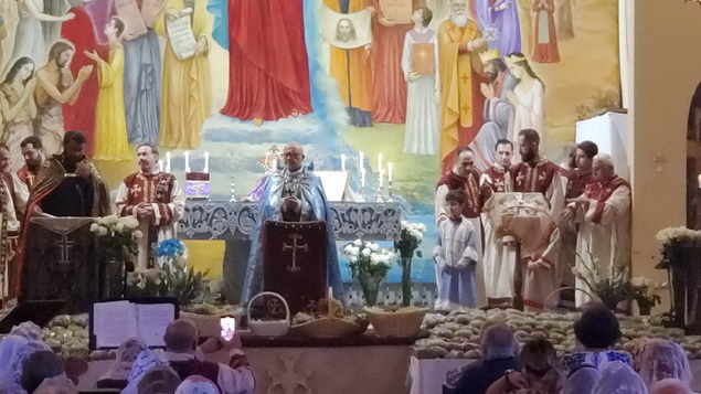 «Հայր մեր»էն առաջ, Սուրբերուն Մասունքը թափօրով եւ շարականի երգեցողութեամբ, Խորան բերուեցաւ Եկեղեցւոյ Հոգեւոր Հովիւ՝ Արժն. Տ. Աւետիս Քհնյ. Աբովեանի կողմէ՝ մոմակիրներու եւ Սարկաւագներու ընկերակցութեամբ: