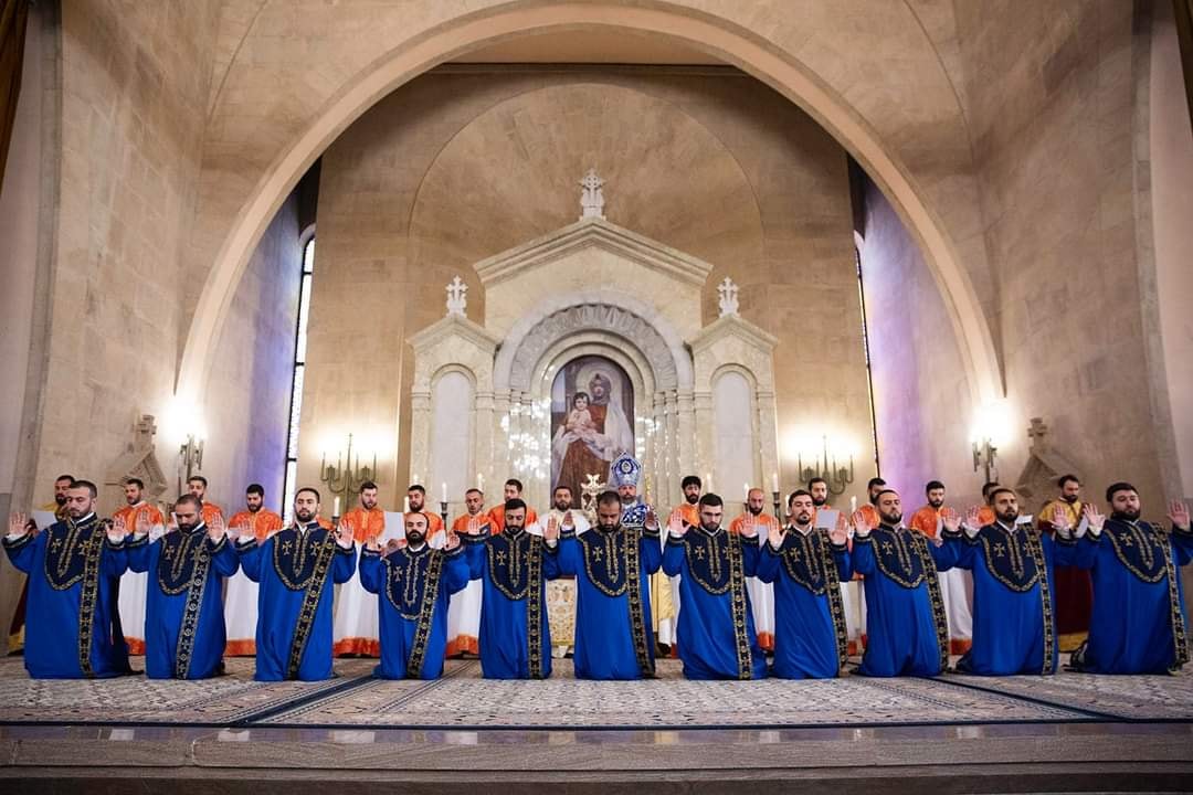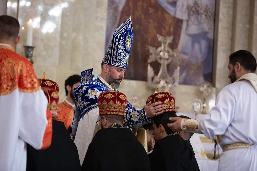 Պատարագի սրբազան արարողության ընթացքում Անուշավան Սրբազանը քահանայության կոչեց նորընծաներին` Սրբալույս Մյուռոնով օծելով քահանանների ճակատներն ու ձեռքերը և շնորհելով նրանց նոր հոգևոր անուններ: Իշխան սարկավագ Գևորգյանը վերակոչվեց Տ. Տրդատ քահանա, Ավետիք սարկավագ Նահապետյանը՝ Տ. Տիրան քահանա, Սասուն սարկավագ Աշուղբաբյանը՝ Տ. Ներսես քահանա, Վաչագան սարկավագ Դոխոլյանը՝ Տ. Հուսիկ քահանա, Հմայակ սարկավագ Կարապետյանը՝ Տ. Արամ քահանա, Տիգրան սարկավագ Սիմոնյանը՝ Տ. Արտավազդ քահանա, Նարեկ սարկավագ Հակոբյանը՝ Տ. Սեպուհ քահանա, Սևակ սարկավագ Հակոբյանը՝ Տ. Տիգրան քահանա, Գևորգ սարկավագ Գևորգյանը՝ Տ. Մաղաքիա քահանա, Արշակ սարկավագ Հակոբյանը՝ Տ. Արտաշես քահանա և Բենիկ սարկավագ Հովհաննիսյանը՝ Տ. Հովհան քահանա:
