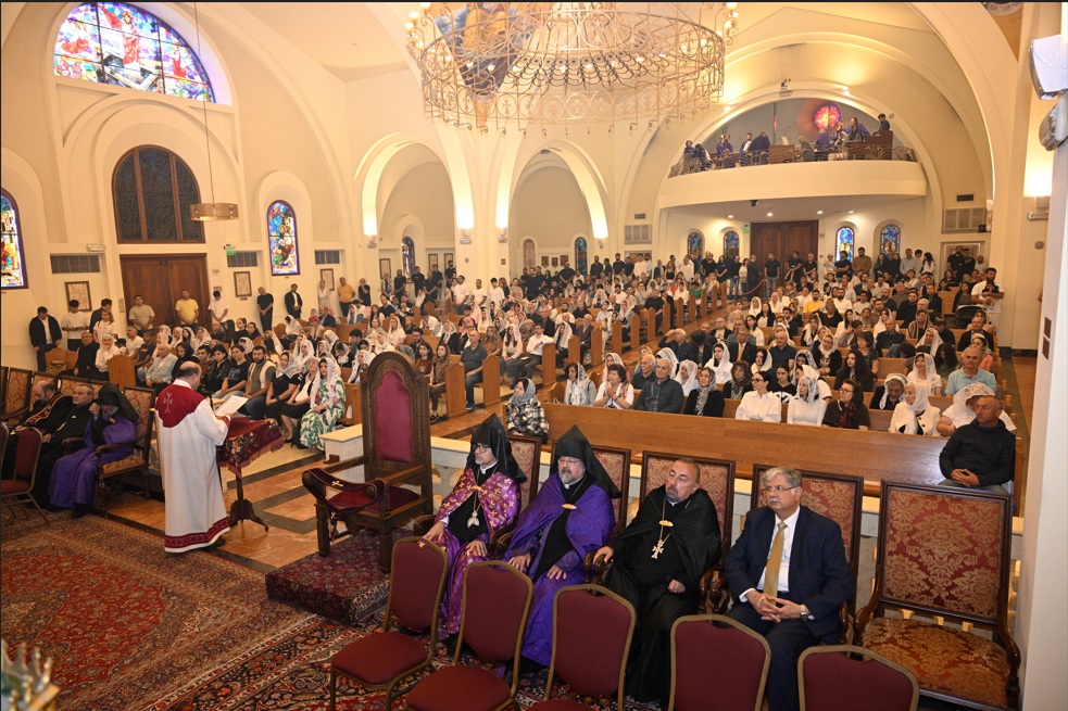 Ամերիկայի Միացեալ Նահանգներու Արեւմտեան Թեմի պատմութեան մէջ կարեւոր օր մը դարձաւ Կիրակի 7 Յունիս 2025 թուականը, երբ Արեւմտեան Թեմը հանդիսաւոր կերպով իր յարգանքը մատուցեց արժանընտիր իր Առաջնորդին՝ Բարձրաշնորհ Տէր Յովնան Արք․ Տէրտէրեանին, վաստակաշատ ու նուիրեալ հոգեւորականի քահանայական ձեռնադրութեան եւ օծման 45-ամեակին առիթով: Արդարեւ, Հոգեգալստեան տօնին ու քահանայական ձեռնադրութեան եւ օծման յոբելինական տարեդարձին առթիւ, զանգերու ղօղանջներուն ներքեւ առաջնորդական թափօրը ուղղուեցաւ դէպի Սրբոց Ղեւոնդեանց Մայր Տաճար, ուր Թեմակալ Առաջնորդ Սրբազան Հայրը մատուցեց Սուրբ եւ անմահ Պատարագը։ Սուրբ Խորանին վրայ Սրբազան Հօր կողքին առընթերակայ հոգեւորականներն էին Մայր Տաճարի Հոգեւոր Հովիւ Արժանապատիւ Տէր Խաժակ Քահանայ Շահպազեան եւ Օգնական Հովիւ Արժանապատիւ Տէր Նժդեհ Քահանայ Քէշիշեան, իսկ Պատարագին երգեցողութիւնը կատարեցին Սրբոց Ղեւոնդեանց Մայր Տաճարի «Շնորհալի» երգչախումբը, ղեկավարութեամբ՝ Արթիւր Սրկ. Վարդանեանի համատեղութեամբ՝ Մայր Տաճարի «Խաչատուրեան» երգչախումբին, ղեկավարութեամբ՝ Ստեփան Սրկ․ Գոզումեանին։