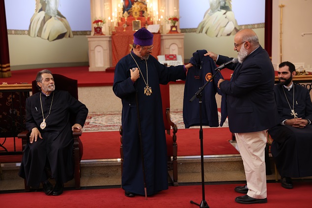 Հանդիպման աւարտին Պատրիարք Հայրը օրհնեց ներկաները եւ բոլոր հոգեւորականներուն նուիրեց յիշատակի լանջախաչեր։