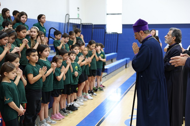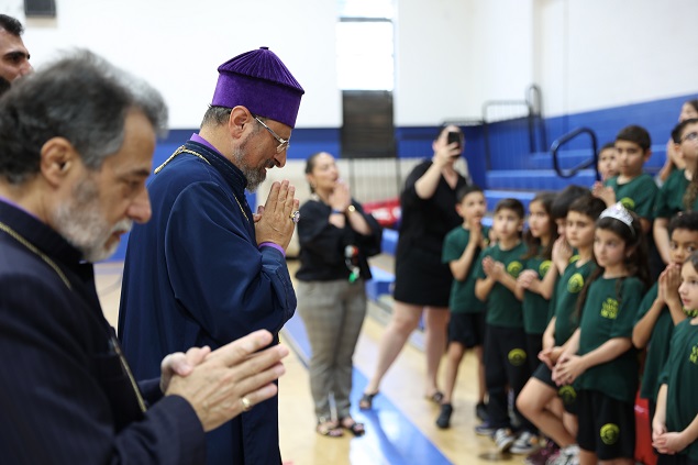 Սահակ Մեսրոպ վարժարանի պատասխանատուները բարի գալուստ մաղթելէ ետք Պատրիարք Հօր եւ Առաջնորդ Սրբազան Հօր, հակիրճ կերպով ներկայացուցին վարժարանին պատմականը։ Ապա, Բարձրաշնորհ Տէր Յովնան Արքեպիսկոպոս Տէրտէրեան աշակերտներուն ծանօթացուց Պատրիարք Հայրը, յայտնելով, թէ՝ Նորին Ամենապատուութիւնը հեռաւոր Ստանպուլ քաղաքէն ժամանած է Լոս Անճէլըս եւ իր պատմական այցելութեամբ կը ծանօթանայ Արեւմտեան Թեմի զանազան հաստատութիւններուն, իր հայրական օրհնութիւնները բաշխելով բոլորին։
