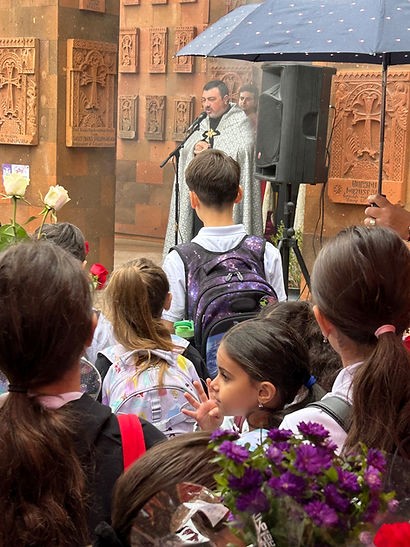 Շատ հուզիչ էր, երբ աշակերտները, ուսուցիչները, ծնողները, անտեսելով տեղացող անձրևը, ծաղիկներ խոնարհեցին խաչքարի առջև՝ միաժամանակ խունկ ու աղոթք բարձրացնելով դեպի երկինք։
